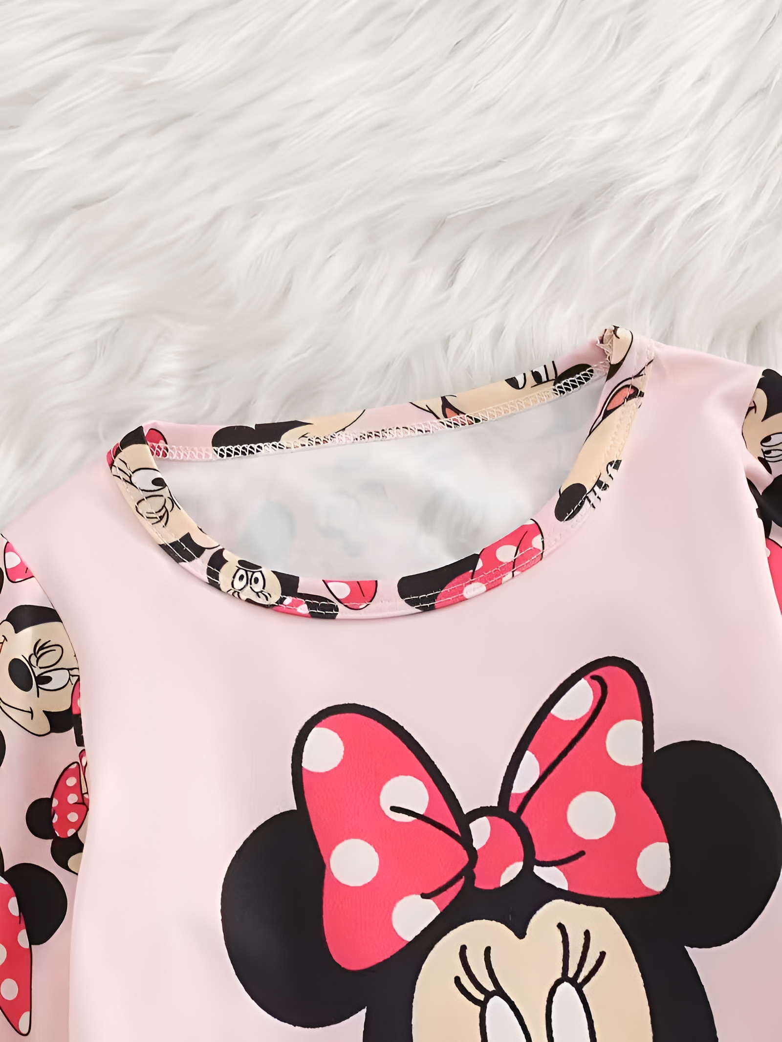 The character bow artwork remains clear through repeated washing, ensuring the design stays visually consistent over time. The random print distribution adds subtle differences between sets without altering the overall layout. The smooth knit texture helps the garments retain structure while supporting motion during indoor play, reading time, or calm household routines.