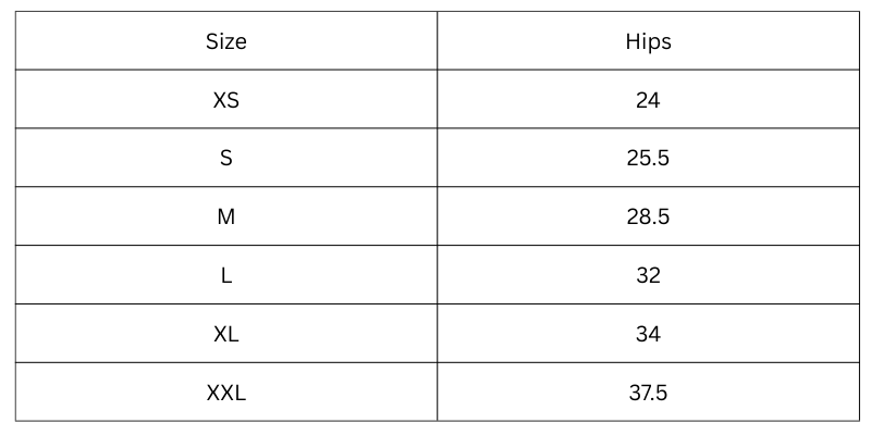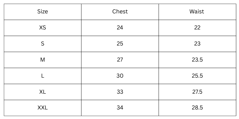 Size Chart(inches):