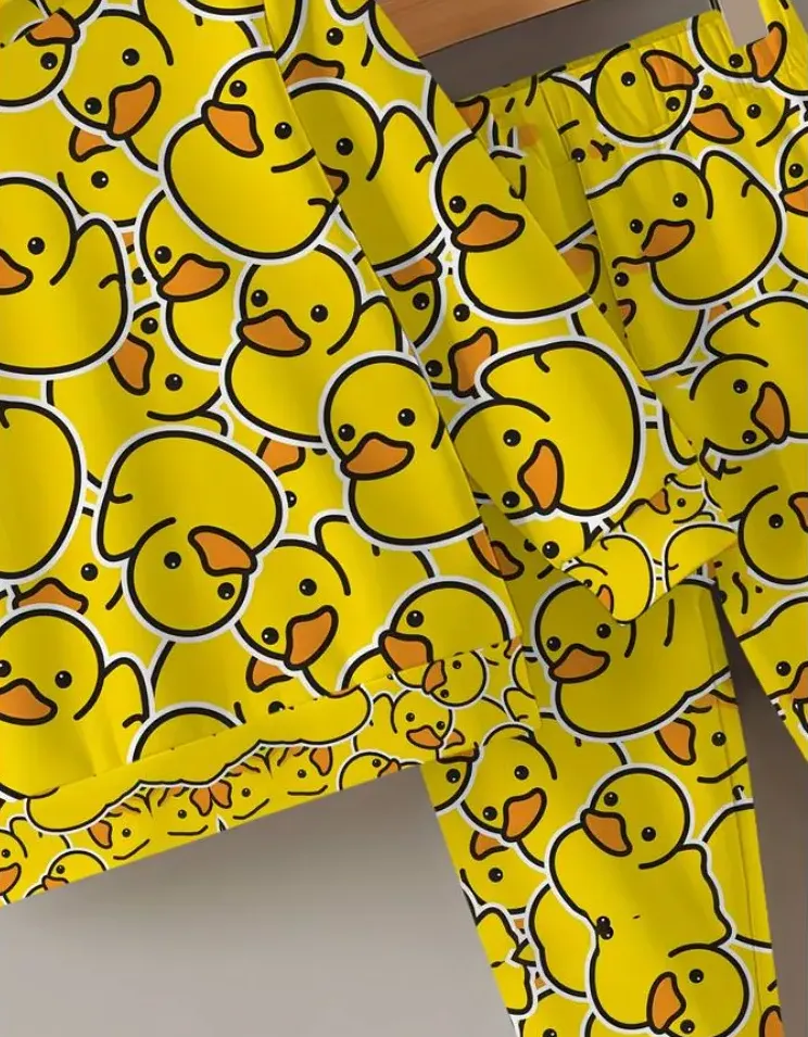 The random duck print adds visual character without overpowering the look, while the matching color palette between the top and bottom creates a seamless profile. It’s built with simplicity in mind, ideal for casual routines, weekend errands, or laid-back activities that don’t require overpacking.