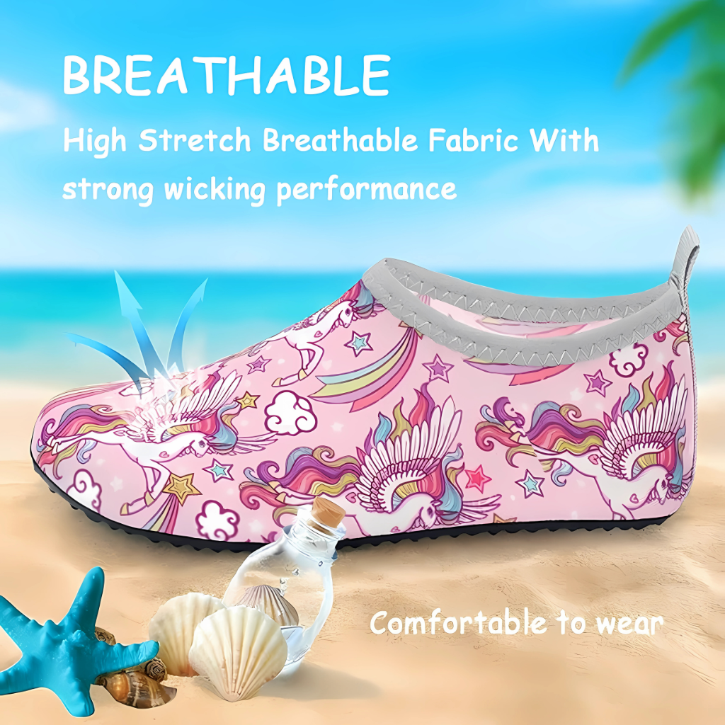 Kids' Water Shoes Aqua are designed for active toddlers who enjoy beach, swimming, and outdoor activities. These shoes combine quick-dry fabric with a flexible rubber sole. They are lightweight and easy to wear for both indoor and outdoor adventures. The pull-on water shoes design makes them convenient for parents and children. Anti-slip aqua shoes help maintain traction on wet or sandy surfaces. Beach swim shoes also provide comfort while moving in and out of the water.