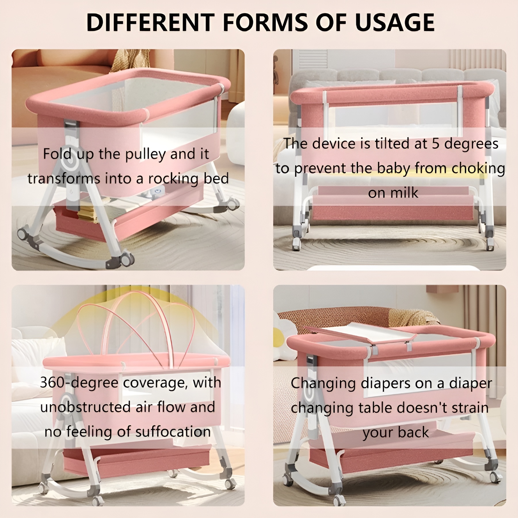 - Design: 4 In 1 Baby Bassinet & Bedside Sleeper