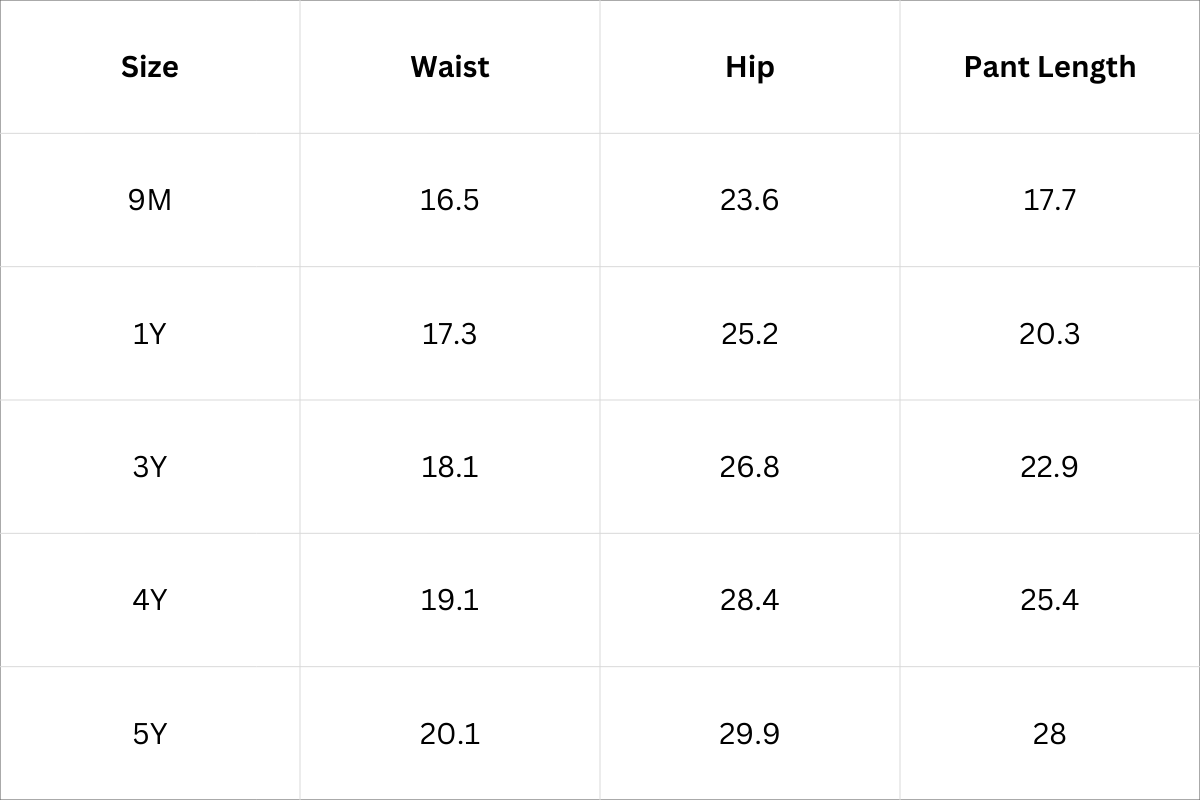 Bottom Size Chart (Inches):